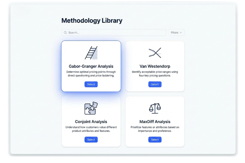 So why, in 2026, do researchers still turn to Gabor-Granger? The answer is speed and clarity. It is quick to run, lightweight, and easy to interpret. It works particularly well for new product launches, where little pricing history exists, and for optimizing existing products where businesses want clarity without committing too complex, time-intensive studies. It is scalable, efficient, and powerful enough to spot potential revenue in a matter of days, making it a valuable tool for researchers who are often under pressure to deliver fast results.